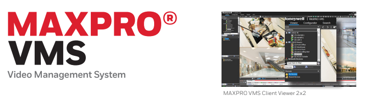 Honeywell’s MAXPRO VMS (video management system) controls multiple sources of video subsystems to collect, manage, and present video in a clear and concise manner. MAXPRO VMS intelligently determines the capabilities of each subsystem across various sites, allowing video management of analog or digital video devices through a unified configuration and viewer. The subsystems can be analog matrix switches or digital/network video recorders allowing both analog or digital input to be viewed on an analog or digital monitor. Users can benefit from using traditional analog systems and IP-network systems at the same time to ensure maximum use of their initial investments. These subsystems range from Honeywell matrix switchers, DVR/NVRs, and 3rd party systems.