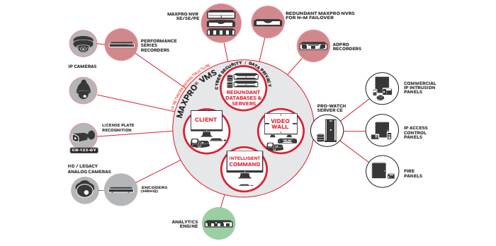 - 1+1/N+M MAXPRO NVR failover and failback features ensure operational continuity during unforeseen maintenance scenarios.